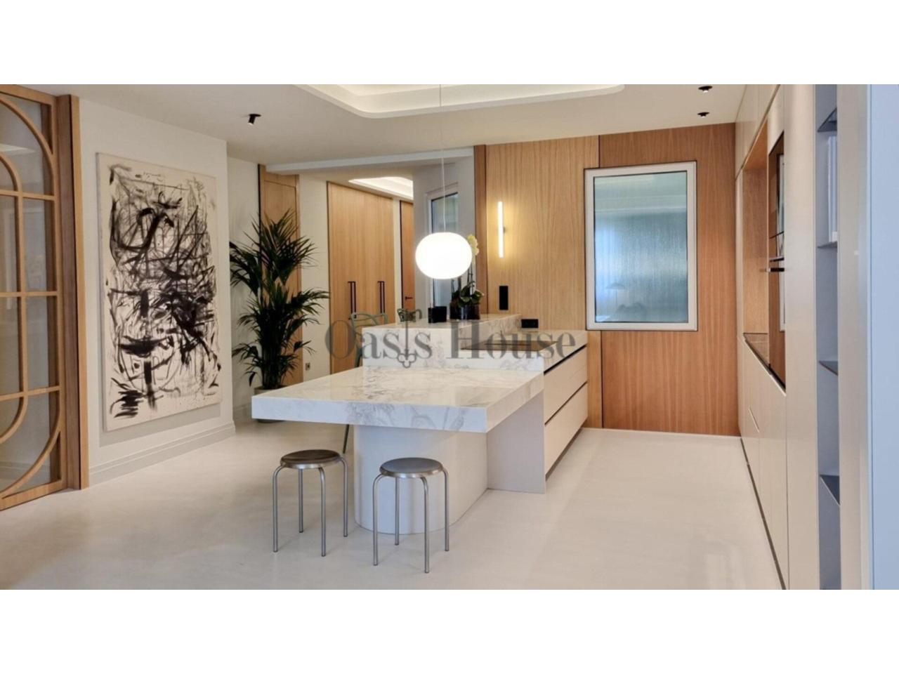 La vivienda ha sido renovada con materiales de primer nivel e incorpora sistemas de climatización de alta eficiencia, como aerotermia con suelo radiante y refrescante, además de aire acondicionado por conductos con sistema Airzone, que permite la regulación por estancias. Los suelos de tarima maciza, la carpintería exterior de PVC de altas prestaciones y los armarios empotrados completan un conjunto donde cada detalle ha sido cuidadosamente seleccionado.