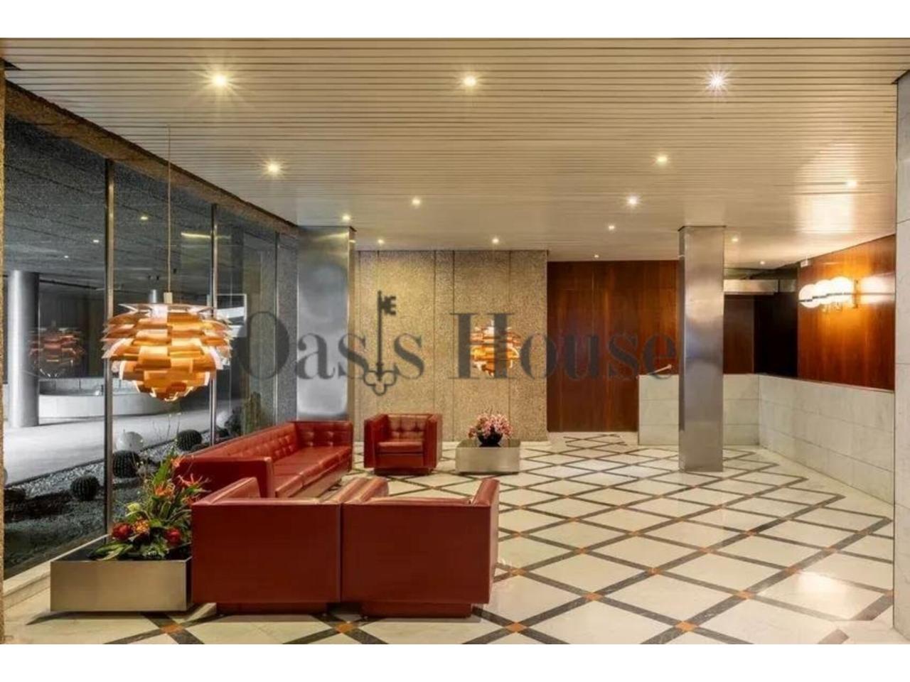 El edificio ofrece servicio de portería y seguridad 24 horas, así como una elegante zona social destinada a reuniones y eventos privados, aportando un valor añadido a la experiencia residencial.